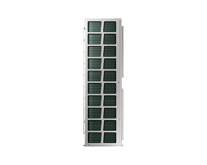 O Permutador de Calor exterior é maior e consegue transferir mais energia de uma vez. A tubagem de refrigerante líquido foi otimizada de forma a maximizar a taxa de transferência, minimizando qualquer perda. O permutador de calor permite uma área de transferência de calor 36,2% maior que um chassis menor¹ e uma transferência de calor 23,7% maior que um chassis maior². O módulo de energia, que é parte integrante do sistema do inverter, foi melhorado, pois reduz a dissipação de calor e poupa energia.